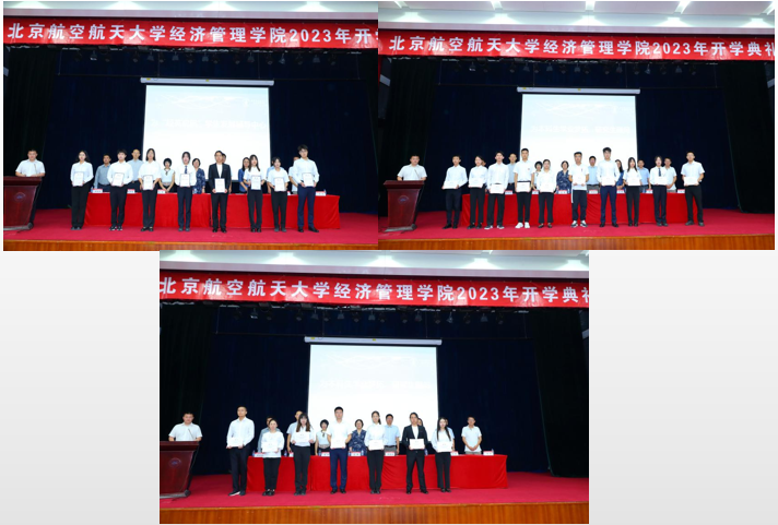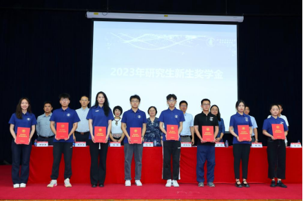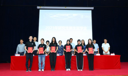 典礼进行下一项,为2023年研究生新生奖学金颁奖。范英院长宣读2023年研究生新生奖学金获奖名单。台上领导和嘉宾向获奖学生颁发荣誉证书。