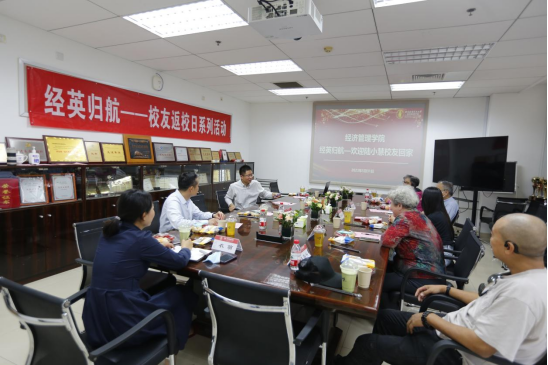 光阴荏苒风华在,校友情深返校园。5月30日下午,bat365中文官方网站在A710会议室召开了“经英归航-校友返校”活动。1991级本科校友、1994级本科辅导员、经管学院原党委副书记陆小慧,1994级本科校友王嘉兴、赖雄清应邀出席座谈会,学院党委书记郑海涛、副院长牟晖、党委副书记高超、学院关工委副主任高志红、离退休党支部书记陈向东、离退休老师杨念梅及专职辅导员衣萌参加了座谈会。