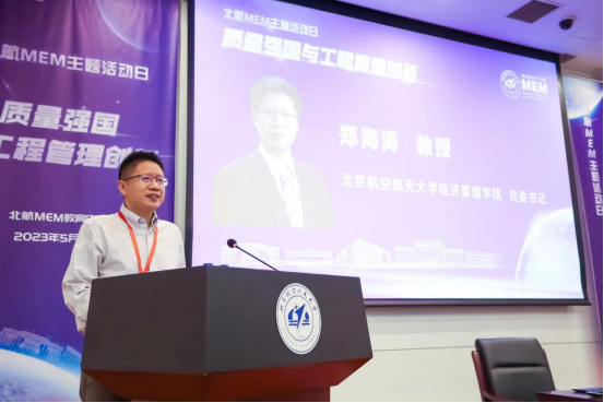 本次主题活动得到全国工程管理教育指导委员会的关心和大力支持。全国工程管理专业学位研究生教育指导委员会委员、北京大学工学院党委书记宋洁教授在致辞中表达了对北航MEM举办主题日活动的肯定和期待。宋教授指出,中共中央、国务院印发的《质量强国建设纲要》提出要加快建设质量强国,着力推动高质量发展,这对工程管理人才培养工作提出了新的要求。全国工程管理教育指导委员会先后推动《工程管理硕士(MEM)专业学位论文标准与工作指南》、工程管理专业学位研究生在线示范课程建设等工作,旨在促进我国工程管理硕士教育高质量发展。
