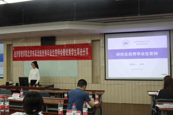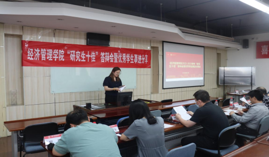 接下来,召开研究生和本科生优秀毕业生答辩会暨优秀学生事迹分享会。研究生的8位候选人按照抽签顺序依次答辩,分别在思想政治表现、学术成果、科研工作、就业去向等方面,展示出他们在研究生期间的收获与成长。有的同学科研成果丰硕,积极参与各项科研项目,并在国内外高水平期刊发表了多篇学术论文;有的同学积极投身于学生工作、社会工作,在冬奥会、挑战杯等多项志愿公益活动中做出了贡献,展现了经管学子的青年担当;有的同学脚踏实地,努力学习,在许多科目中取得了优异成绩。本科生的16位候选人按照抽签顺序依次答辩,在社会实践、学业成果、所获荣誉、志愿活动等方面展现风采。同学们的答辩展现出了朝气蓬勃的精神风貌,希望低年级同学向优秀学长学姐学习,在交流学习中共同成长。