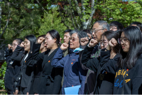 全体成员庄严肃立、重温入党誓词。在慷慨激昂的宣誓声中,表达对党的忠诚和信仰,深刻感受作为一名党员的责任与为实现中华民族伟大复兴而努力奋斗的伟大使命。