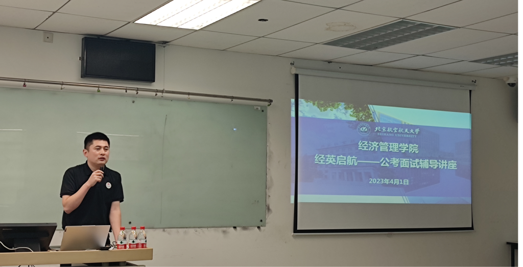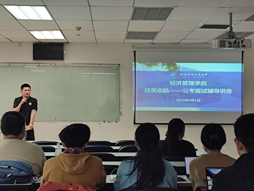 4月1日,“经英启航计划”——公考面试辅导讲座在新主楼A座1148教室举行。讲座由北京华图面试专职教师靳伟鹏主讲,经管学院本硕博二十余名学生参加。讲座分为公考面试辅导和一对一面试模拟测评两个环节。