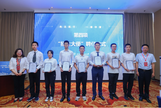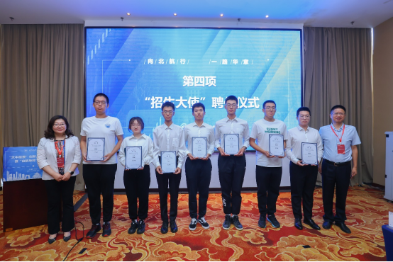 随后,进行“启航导师”和“招生大使”聘任仪式。为了更好地开展大中衔接,探索高校与中学联合的有效模式,建立常态化高质量的交流机制,发现具有创新潜质的优秀中学生,培养国家需要的高水平科研后备力量,我校黑龙江招生组面向全校黑龙江籍的师生,选拔涵盖航空航天、信息、理科、文科、医工等学科群的17名“启航导师”和25个学院书院的54名“招生大使”,助力北航与黑龙江省各中学的精准对接。副校长黄海军为马树微等“启航导师”代表颁发聘书,招生办公室主任邓怡和bat365中文官方网站党委书记郑海涛为张珈赫等同学代表颁发“招生大使”聘书。
