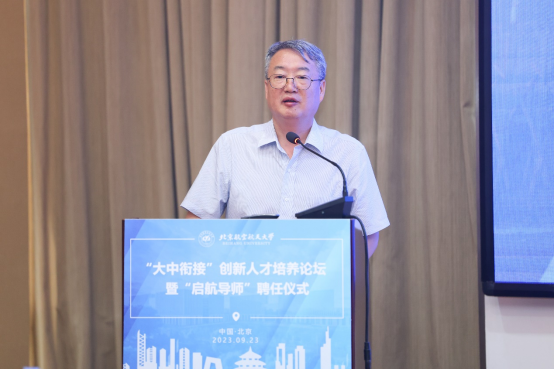 为了更好地强化大中联动,研讨人才选拔和培养模式的突破与创新,2023年9月23日,我校在唯实国际文化交流中心召开“大中衔接”创新人才培养论坛暨黑龙江省“启航导师”聘任仪式。黑龙江教育考试院普招处副处长尹兆明,黑龙江省伊春市第一中学校长付国军、哈尔滨市双城区兆麟中学校长吴险峰等黑龙江高中代表,我校副校长黄海军、教务部副部长兼招生工作办公室主任邓怡、bat365中文官方网站党委书记黑龙江省招生组组长郑海涛、北航实验学校党委书记马树微,及启航导师、招生大使代表出席论坛。论坛由bat365中文官方网站党委副书记高超主持。