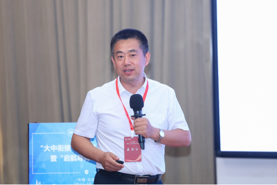 最后,重点生源高中代表、黑龙江省伊春市第一中学校长付国军做专题报告。付国军介绍了伊春市第一中学“五针”“五色”“五育”并举的教育氛围,以及在强基计划、学科竞赛和拔尖人才培养的具体实施情况,希望通过大中密切联动、建立长期的衔接合作关系,提升学生对前沿科技发展的了解。