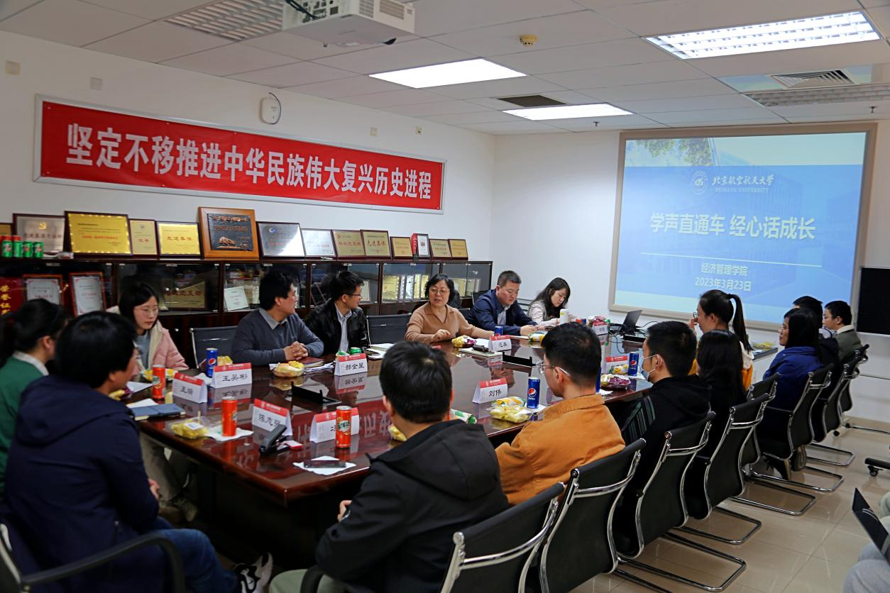 为深入了解学生学习生活状态,切实开展好学生管理服务工作,3月23日,bat365中文官方网站“学声直通车 经心话成长”系列座谈活动第一期——高年级博士生座谈会在新主楼A710召开。bat365中文官方网站院长范英、党委书记郑海涛、副院长郝金星、副书记高超、分团委书记白雪及10余名博士生代表参加。座谈会由副书记高超主持。