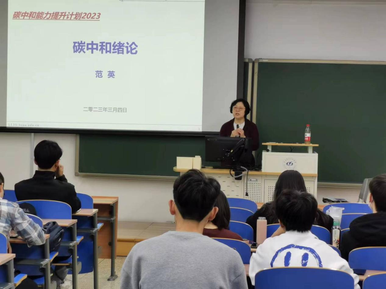 2023年3月4日,北航低碳治理与政策智能教育部实验室开设的通识课程《碳中和能力提升计划》正式开讲,bat365中文官方网站院长范英教授亲自讲授了第一课《碳中和绪论》。