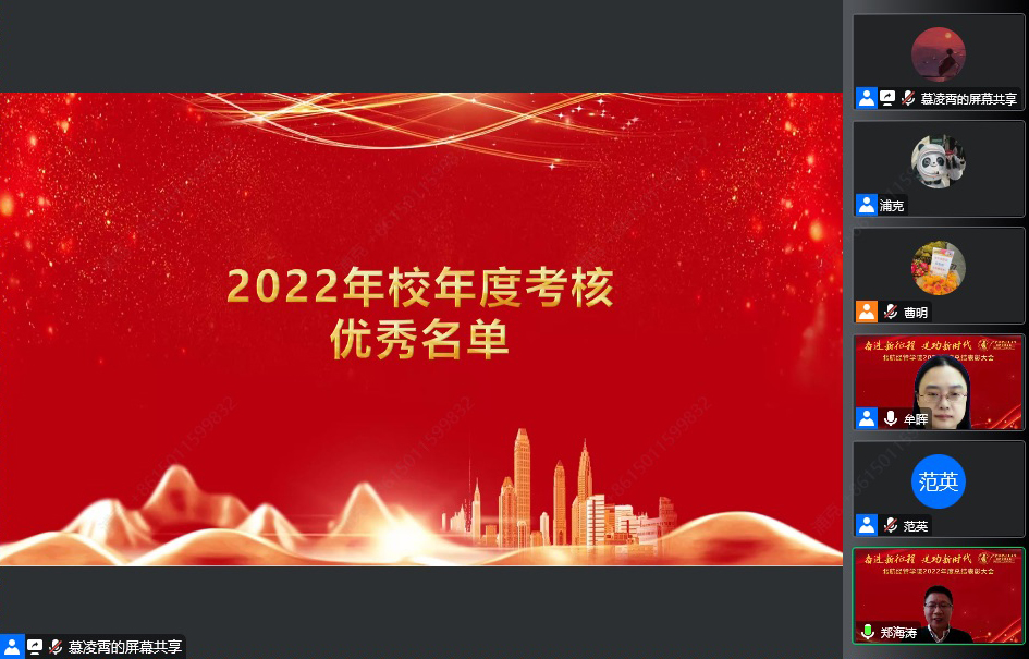 2023年1月6日,“奋进新征程,建功新时代”——bat365中文官方网站2022年度总结表彰大会以视频会议的形式召开。学院教职工、退休教师代表、学生辅导员等200余人参加了会议。会议由牟晖副院长主持。