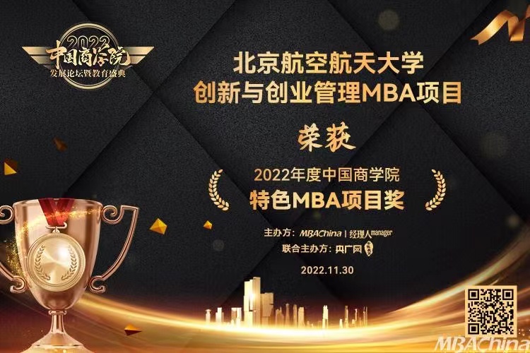 北航MBA创新与创业管理方向聚焦创新创业实践,营造创业文化氛围,通过创业课程、创业大赛、创业孵化等,帮助处于不同阶段的学子得到创业教育和扶植。开设六年来,已成为学生最感兴趣的方向领域。在本次评选中,创新与创业管理方向两年蝉联特色MBA项目奖。