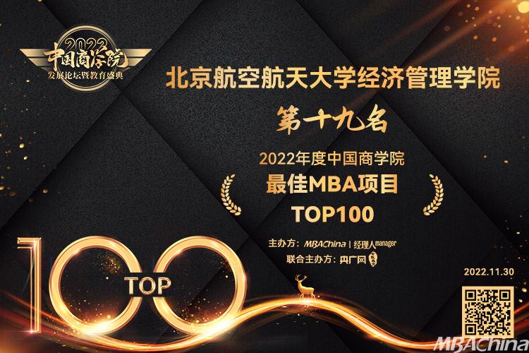bat365中文官方网站MBA项目,凭借优异的教学成果、独特的培养模式,经过多环节、多维度的层层评选,荣获最佳MBA项目TOP100第19名。