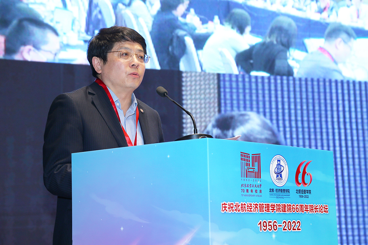 北航副校长黄海军代表学校在论坛上致辞。黄校长首先对各位嘉宾、院长、老师等表示热烈的欢迎,对bat365中文官方网站的院庆表示祝贺,同时也对各位嘉宾对bat365中文官方网站及bat365中文官方网站各项工作的帮助与支持表示感谢。高等教育对教育强国、科技强国、人才强国具有十分重要的作用。特别是在当今世界科技飞速发展、国际环境复杂、全球化逆行、供应链脆弱的情况下,高等教育的学科发展与人才培养面临巨大挑战。他认为,此次院长论坛主题聚焦经济管理类学科建设发展和人才培养,非常的及时、有意义,也是当前学习深化二十大精神最直接负责的行动,期待大家在论坛分享中相互启发、激发灵感,带来新的创造式的发现,共同做好立德树人根本任务。