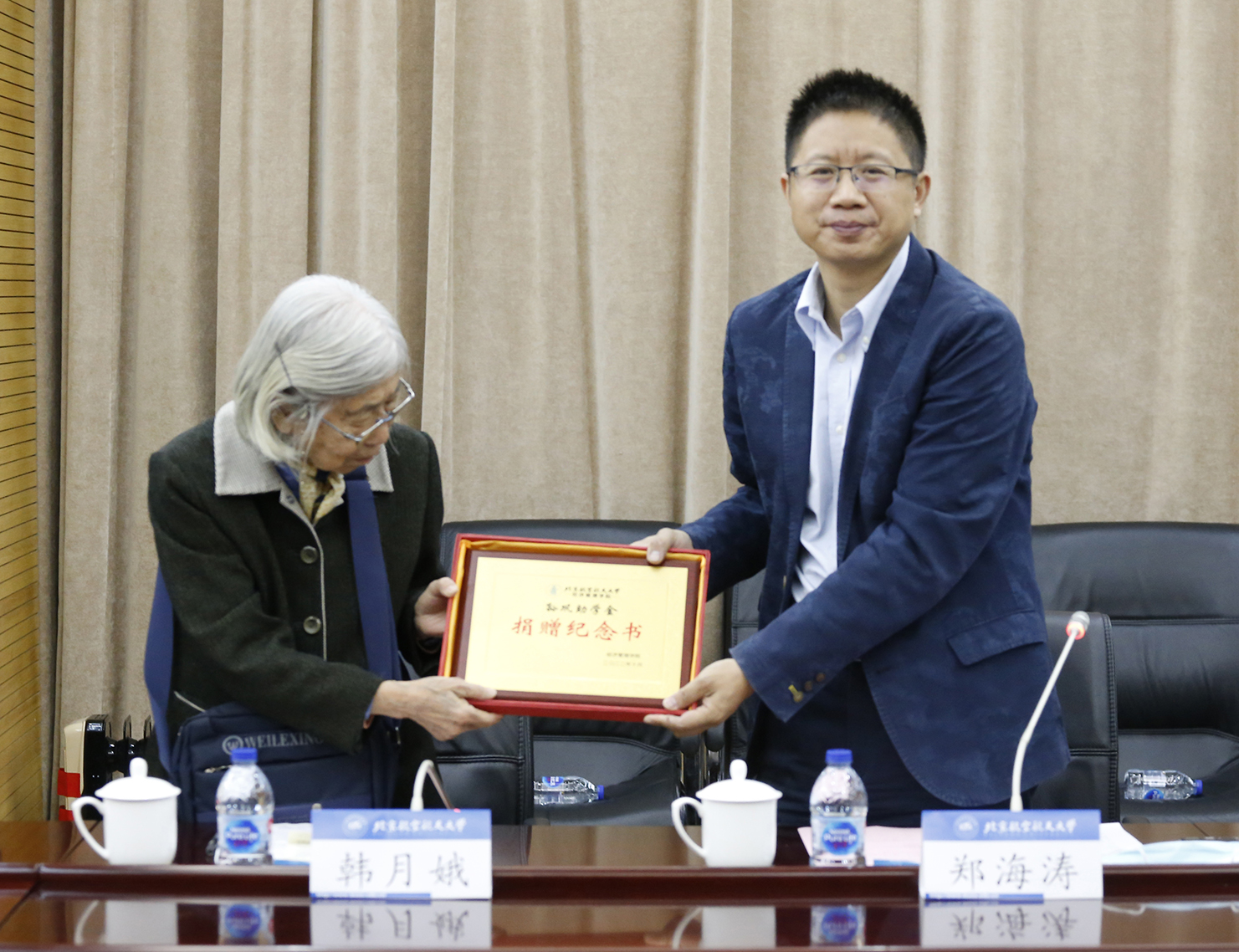 2022年10月19日,“孙巩助学金”捐赠仪式在北航学院路校区新主楼第八会议室举行,孙巩教授的夫人韩月娥教授和bat365中文官方网站党委书记郑海涛教授出席。
