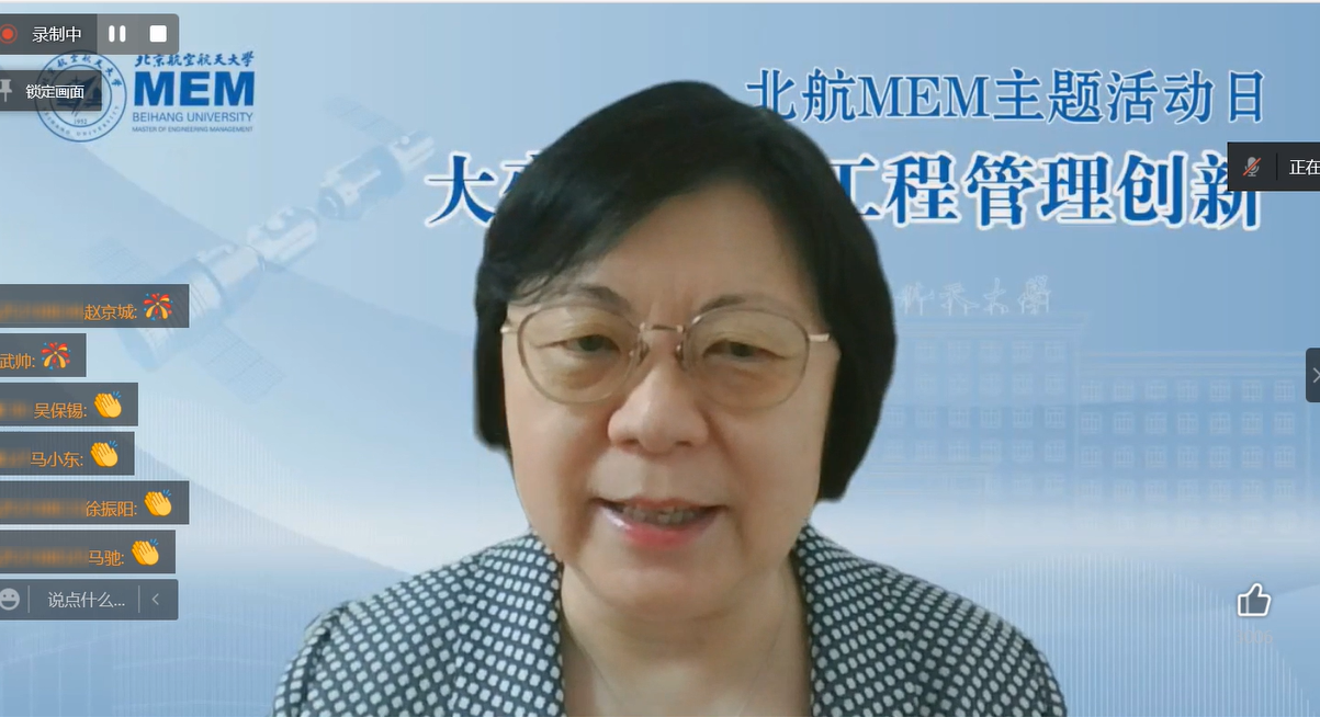 2022年5月21日上午,由北航MEM教育中心主办的“大变局下的工程管理创新——北航MEM主题活动日”成功举行。本次活动邀请到了中国工程院院士、中国载人航天工程空间站系统总设计师杨宏院士,中国轻工业管理协会副理事长兼秘书长郭和生先生等多位资深行业专家及北航bat365中文官方网站教师代表,共同探讨大变局下工程管理创新所面临的机遇、挑战,并做了内容丰实的行业实践分享。北航MEM教育中心主任闪四清教授主持活动。2019级、2020级和2021级的同学通过腾讯会议在线参与。