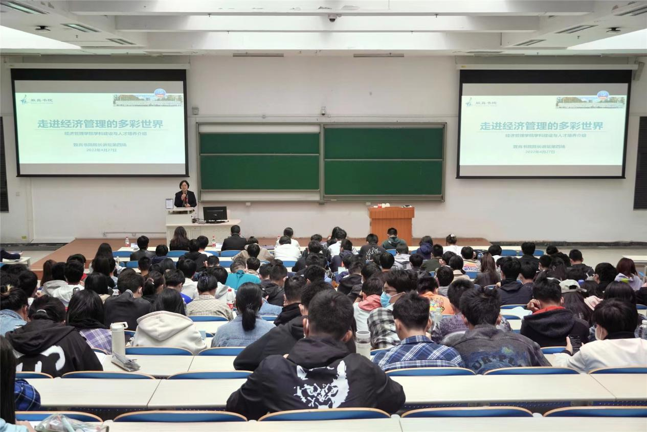 随后,范院长介绍学院四个一级学科的分布情况和理工科背景下经管学院人才培养的特色和优势。她特别强调了经济管理是学以致用、“顶天立地”的学科。学院始终坚持“强基础、宽口径、学科交叉融合”的大类培养要求,将大数据理念融入专业教学,推动教学模式创新,建设多层次分阶段的实验教学体系。