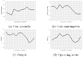 研究发现参与ETS试点后的电厂与未参与ETS的电厂相比,煤炭消费量下降了16.1%,然而两组电厂在煤炭消费强度方面的变化差异很小,双重差分模型的系数估计值为0.024。与此相呼应,ETS试点电厂的发电量相比于未参与电厂的发电量有显著下降,同时在发电利用时间方面也有一定下降,但在统计上不太显著。该研究在进一步考虑了超低排放政策,国控企业污染物自动监控,节能电力调度,燃煤电厂退出等潜在干扰因素后结果依然稳健。