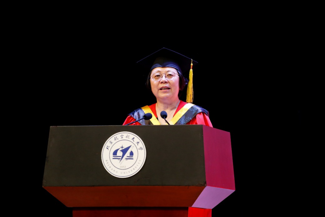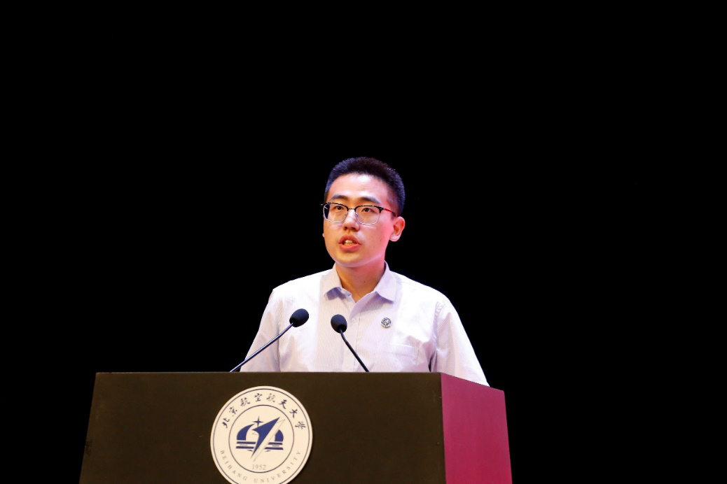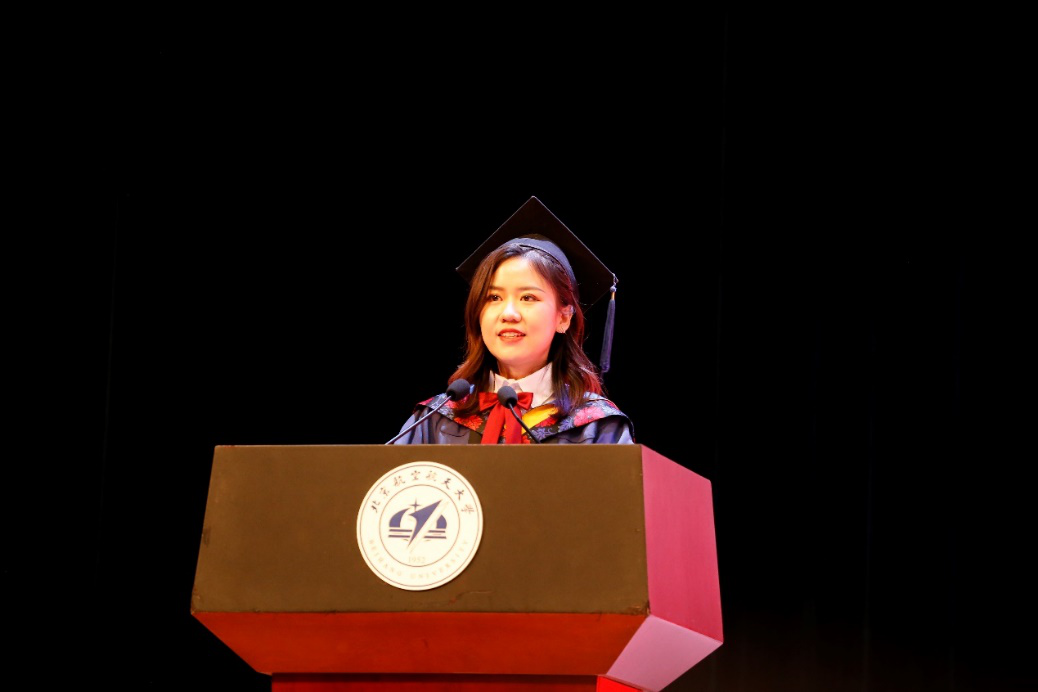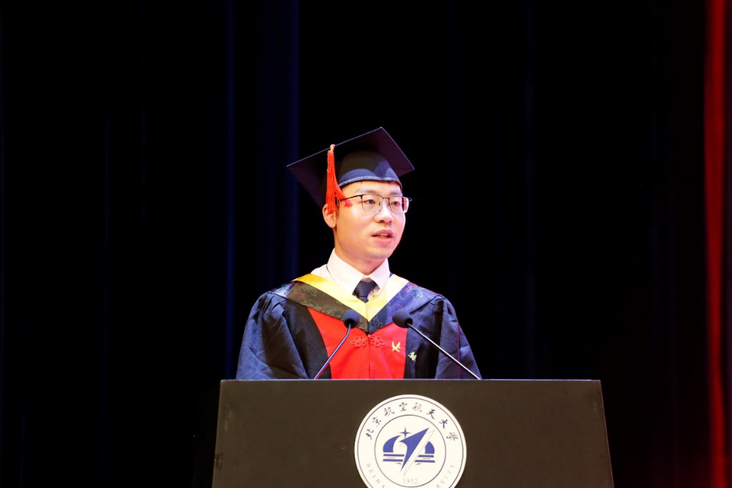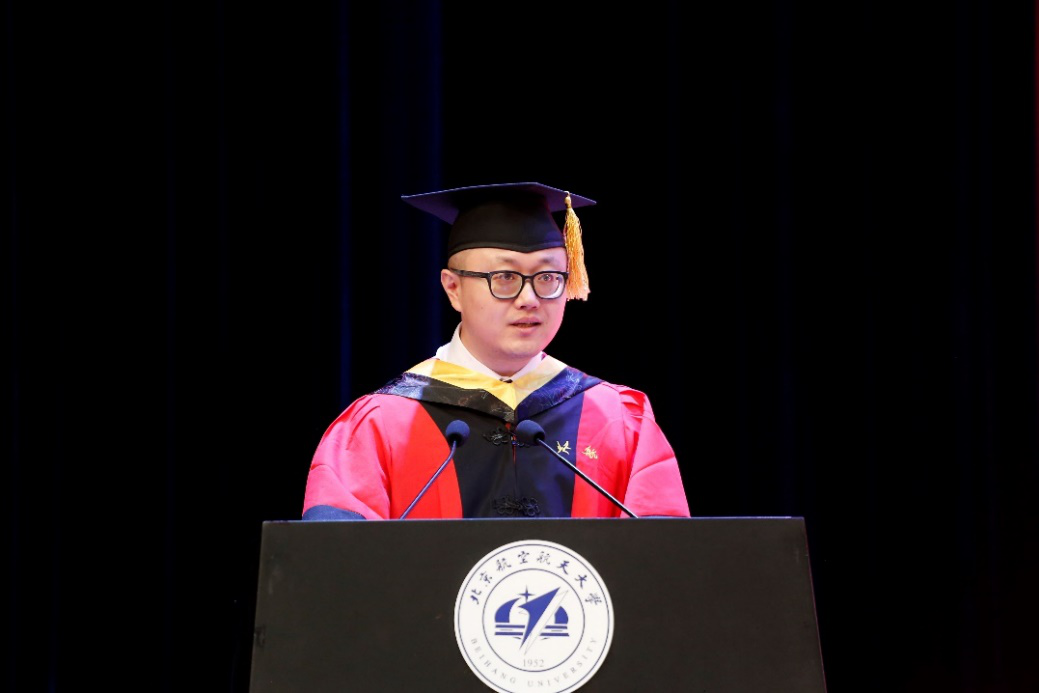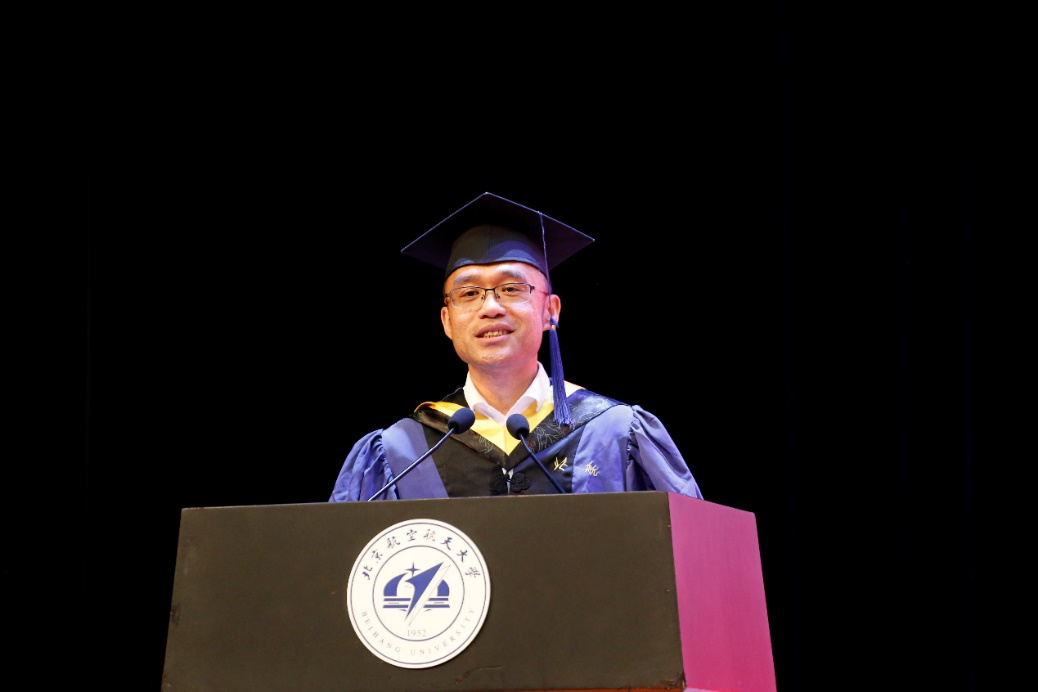 研究生导师代表张思萱代表全体教师为毕业生们送上了祝福和期许。张思萱与同学们回顾了自己作为青年教师,与同学们共同进步成长,共同感受北航荣光时刻的经历。他寄语同学们,珍惜宝贵的学习经历,在面对困难时,给自己一份自信,祝福同学们披荆斩棘,永远年轻。