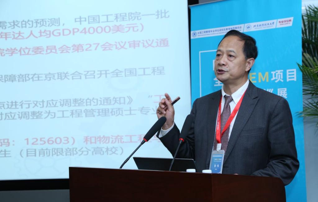 MEM教指委副秘书长、清华大学工程管理硕士中心主任张伟教授作《服务时代需求,推进MEM教育发展》主题报告。张伟教授介绍了研究生教育经历对个人发展的优势,运用详实的图表讲解了我国专业学位教育发展历程、MEM专业学位研究生教育的设立过程、定位和特点,我国MEM近十年的报考招生情况等,并对目前国内各种MEM办学架构的优势、潜在挑战进行对比分析。最后,张伟教授从宏观视角剖析了MEM发展面临的机遇与挑战,介绍了MEM教指委为促进中国MEM发展而正在推进的相关举措。