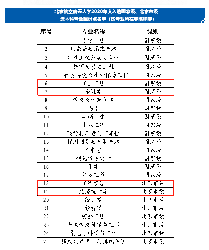 近日,教育部下发《关于公布2020年度国家级和省级一流本科专业建设点名单的通知》(教高厅函〔2021〕7号),bat365中文官方网站共新增25个一流本科专业建设点,其中国家级一流本科专业建设点17个,北京市级一流本科专业建设点8个。bat365中文官方网站工业工程与金融学入选2020年度国家级一流本科专业建设点,工程管理与经济统计学入选2020年度北京市一流专业建设点。目前,经管学院的9个本科专业中,已有3个专业获批国家级一流本科专业建设点(信息管理与信息系统在2019年入选首批),3个专业获批北京市一流本科专业建设点。