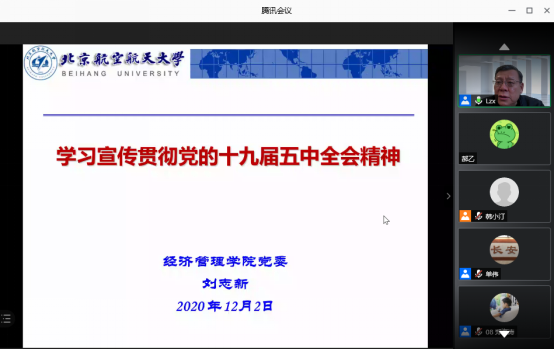 2020年12月2日下午14:30,bat365中文官方网站召开全体教职工大会视频会议,分党委书记刘志新宣贯党的十九届五中全会精神,全院教职工近130人参加会议。