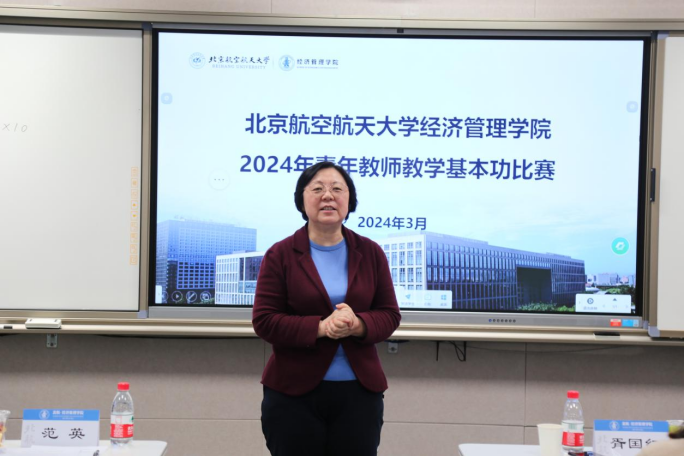 为了加快青年教师成长的步伐,提高青年教师课堂教学能力,夯实业务基本功,引导和鼓励教师上好每一堂课,经管学院于3月20日举办了2024年青年教师教学基本功比赛。学院数十位青年教师参加了现场比赛。比赛评委由北京市教学名师、优秀主讲教师、思政名师、北航教学督导组成员等专家组成。