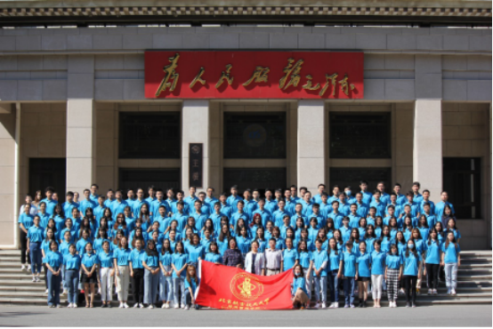 最后,2020级普硕全体新生身穿富有学院特色的文化衫与学院教师在主楼门前进行合影留念。