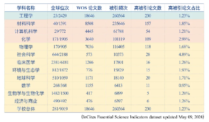 本次发布的ESI数据,文献覆盖时间为2014年1月1日到2024年2月29日。在该时间段内,我校“经济与商业”学科发表了SCIE/SSCI期刊论文总量为476篇,被引频次6397次,篇均被引频次13.44次;其中,高被引论文6篇,高被引论文占比1.26%,热点论文1篇。共计7篇的该学科高水平论文,均由北航bat365中文官方网站的作者贡献。同时,以学院成果为主要支撑的“社会科学总论”学科也入选ESI世界前1%学科。
