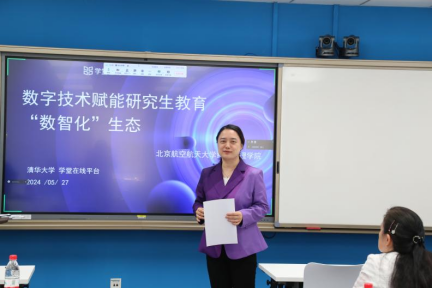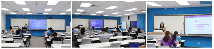 学堂在线大区总监赵媛以《数字技术赋能研究生教育‘数智化’生态》为题做了精彩的报告。她结合当前国家教育数字化战略行动,介绍了慕课及学堂在线发展的历史,详细讲解了线上课程的制作流程,并对已建的优秀线上课程进行了展示和分析。学堂在线产品培训师申正宇带来了题为《基于雨课堂的混合式教学探索与实践》的报告,通过对“雨课堂”的基本功能、操作技巧以及常见问题进行了详细的讲解和演示,深入浅出地介绍了如何利用“雨课堂”进行在线授课、布置作业、组织考试、与学生线上互动等教学活动,展示了在教学实践中利用雨课堂平台进行混合式教学的经验和成果。此外,学堂在线AI4E团队课程顾问马青林做了题为《人工智能赋能教育教学》的报告,从人工智能技术在教育领域的应用出发,探讨了如何将人工智能赋能于教育教学实践中,为教育领域带来创新与变革。
