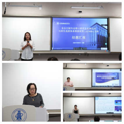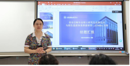 接着,各项目负责人就项目研究进展进行了详细汇报。MBA中心梁娜老师以MBA为例对非全日制专业硕士研究生招生选拔体系进行探究,提出“三筛一选”制度。学工办衣萌老师强调了美育中音乐教育在学生心理健康方面的重要性与实践探索。党政办朱凯慧老师在党建方面探索支部组织生活评价体系,以基层党支部为抓手,推动创新人才培养、基础研究、重大课题突破。案例中心李莎老师团队对学院官网的在线案例库建设成果进行展示,以求为学院师生提供丰富实用的案例资源、搭建高效便利的案例共享平台。学院资料室石岚老师汇报了资料室服务模式的拓展创新研究,将资料室的服务做到深层次、系统性。MPAcc中心许光明老师就数智化时代下高校会计专业课程转型的发展趋势与前景预测进行了汇报。