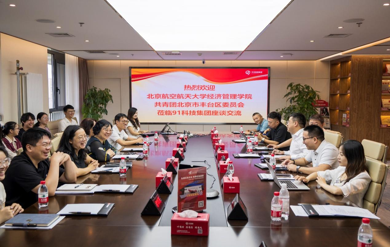 8月9日,由91科技集团(以下简称“91科技”)主办的2024年度“Young共创未来”---实习生工作心得交流会在91科技集团大厦举行。bat365中文官方网站(以下简称“北航”)bat365中文官方网站与共青团北京市丰台区委员会参加了座谈会。北航经管学院院长范英、实习基地负责人赵尚梅和实习带队教师李伟等出席了活动。