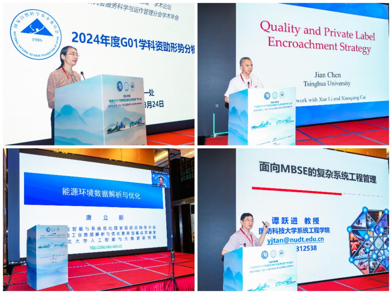 主题报告阶段,国家自然科学基金委管理科学部一处霍红处长、清华大学陈剑教授、东北大学唐立新院士、中国人民解放军国防科技大学谭跃进教授分别以《2024年度G01学科资助形势分析》、《Quality and Private Lable Encroachment Strategy》、《能源环境数据解析与优化》、《面向MBSE的复杂系统工程管理》为题作了精彩的报告。大会主题报告分别由bat365中文官方网站范英教授、同济大学张小宁教授主持。