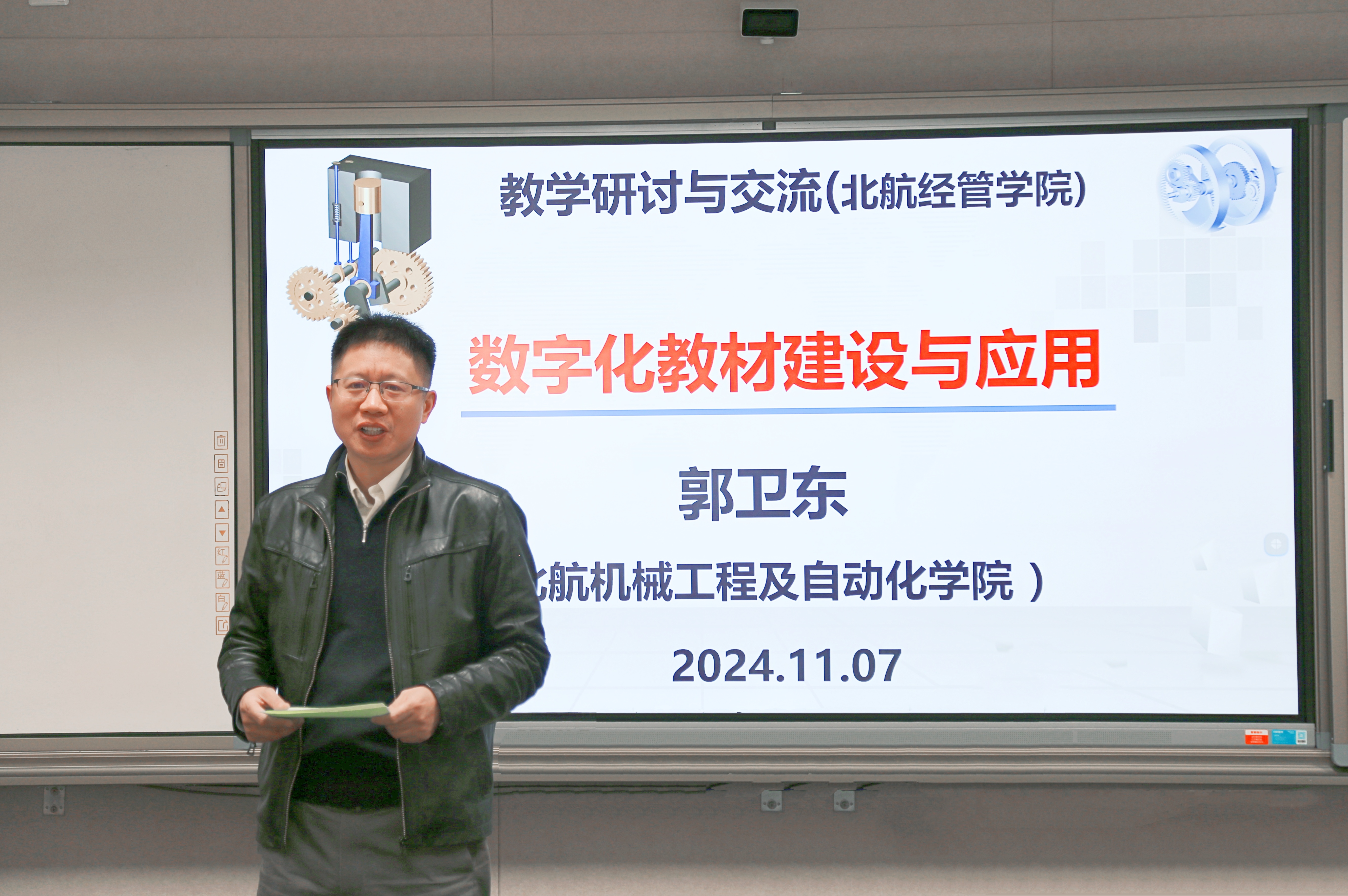 为积极响应国家教育数字化战略行动,高质量推进优质教材资源数字化建设,提升学院教师的教学水平和创新能力,11月7日,经管学院邀请国家级教学名师、机械工程及自动化学院的郭卫东教授做 “新形态数字教材建设与应用”专题讲座。学院四十余名教职工参与本次讲座,讲座由牟晖副院长主持。