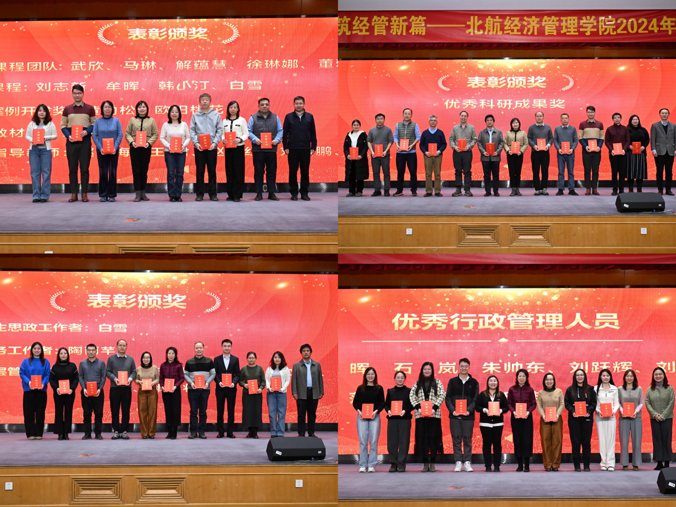 表彰先进、立标树范。在过去的一年里,经管学院秉持着锐意进取、勇于创新的精神,在教学、科研与社会服务等多个领域取得了令人瞩目的成就,大会对2024年度在教学、科研、社会服务等方面做出突出贡献的先进个人与集体进行了表彰,共有107人次与5个集体分别获得2024年度经管学院教学类、科研类、社会服务类共21个奖项。