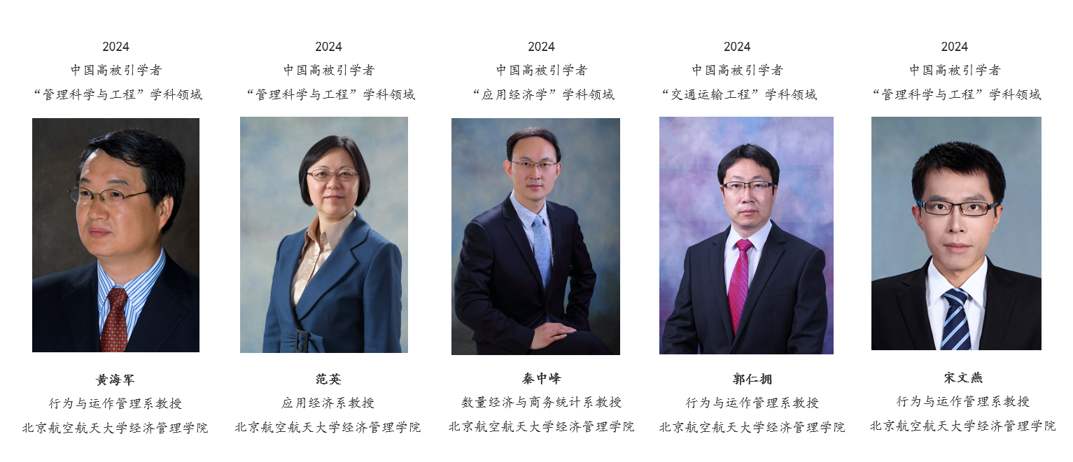 其中,北航bat365中文官方网站5位教授入选,分别是黄海军教授、范英教授、秦中峰教授、郭仁拥教授、宋文燕教授。