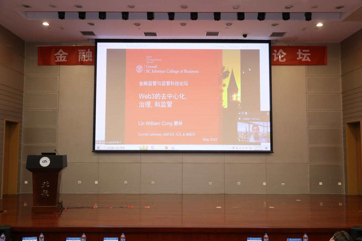 在5月18日上午的大会报告中,发展中国家科学院院士、国际系统与控制科学院院士、中国科学院数学与系统科学研究院汪寿阳研究员带来题为“加密货币与金融监管的几个问题”的大会报告。中国科学院数学与系统科学研究院杨晓光研究员带来题为“市场辅助监管机制的有效性”的大会报告。首都经济贸易大学党委副书记、校长吴卫星教授带来题为“量、异、需:金融市场供给特征与家庭参与”的大会报告。康奈尔大学约翰逊商学院讲席教授丛林带来题为“Web3的去中心化治理和监管”的大会报告。International Review of Financial Analysis期刊主编、Luiss Business School金融学教授Samuel A. Vigne带来题为“Biodiversity and Corporate Finance”的大会报告。