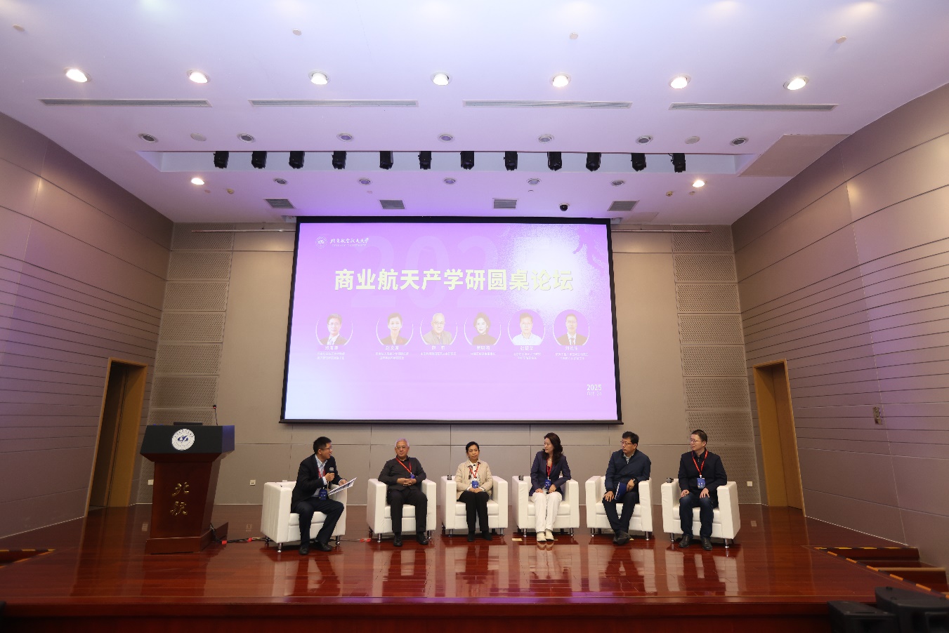 商业航天产学研圆桌论坛,由北航bat365中文官方网站党委书记郑海涛教授主持,对话国家航天局高分专项副总师、国际宇航科学院赵文波院士,中国科学院国家天文台赵有研究员,中商汇投基金董事长窦明明,北航宇航学院副院长张振华教授,航天工程大学空间目标感知全国重点实验室办公室刘德生主任。论坛聚焦商业航天发展过程中产学研融合面临的机遇与挑战,通过观点分享、思想碰撞,为商业航天安全有序发展和产学研深度融合进行了深入的讨论。