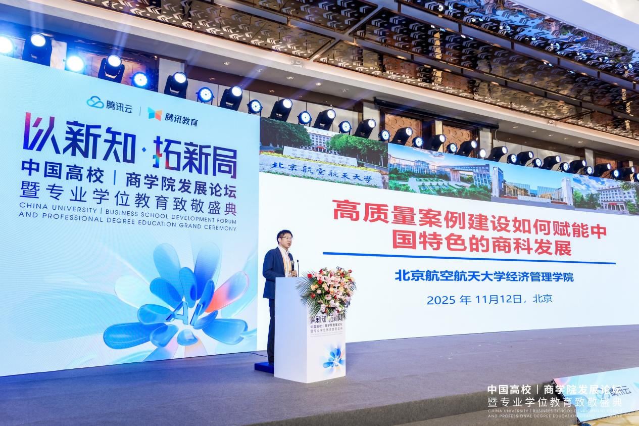 2025年11月12日,由腾讯教育主办的中国高校|商学院发展论坛暨专业学位教育致敬盛典在北京举行。全国高校商学院院长、项目主任、行业专家、企业领袖及院校代表齐聚一堂,深度剖析商科教育在新时代的发展趋势,共绘未来发展蓝图。