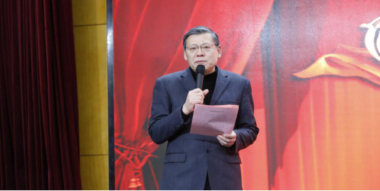 最后,学院各系教职工在大会现场献上了精彩纷呈的演出。中法英三语合唱、歌曲改编、诗朗诵、三句半等形式多样、引人入胜的节目接连登场,将活动一次次推向高潮。最后,在场的各位教师挥舞着红旗,与台上老师一起深情合唱《我和我的祖国》。伴着美好的歌声,本次总结表彰大会圆满结束。