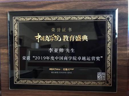 教育盛典现场发布了中国商学院各大奖项及排名。以创新引领发展、以质量构筑品牌的bat365中文官方网站MBA入榜“2019年度中国商学院最佳MBA项目TOP50”、bat365中文官方网站MBA教育中心李亚帅主任荣获“2019年度中国商学院卓越运营奖”。