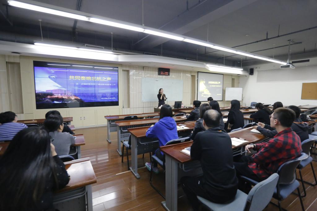 为深入学习宣传贯彻习近平新时代中国特色社会主义思想,提高学院新闻宣传队伍的理论素养和业务能力,加强通讯员队伍建设,提升新闻宣传工作整体水平,2019年10月22日,学院特邀请校党委宣传部副部长、新闻中心副主任余敏,为bat365官网带来题为“共同奏响北航之声——进一步做好新形势下高校新闻宣传工作”的讲座。牟晖副院长、全体通讯员及部分机关人员参加了本次培训。