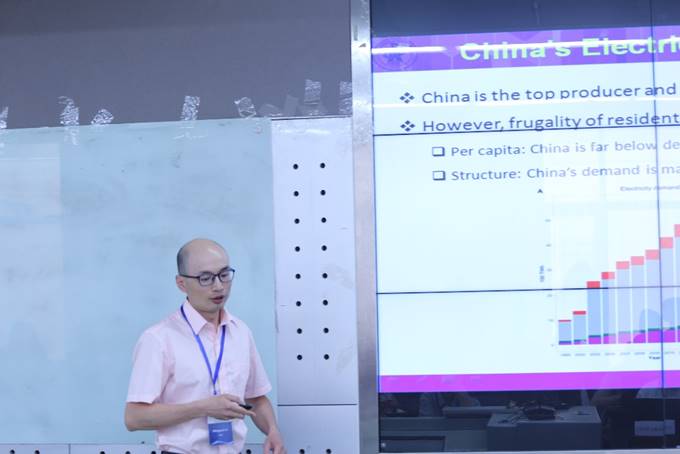 北航经管学院李明全助理教授介绍了基于自底而上动态系统建模方法对我国电力需求与供给、技术选择、排放和政策影响等进行模拟的成果。在介绍研究的主体框架以及SCUC-SCED模型在体系中的作用的基础上,展示了对我国电力未来需求进行高精度预测的结果,并针对电力部门低碳转型改革与在场嘉宾进行了较深入的探讨。