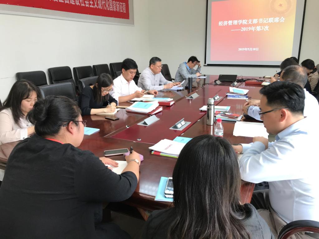 2019年5月10日,学院召开党支部书记联席会,学院党委书记刘志新主持会议,全体教工支部书记、副书记及学生工作负责人参加会议。