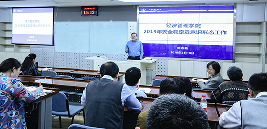 会上,刘志新书记传达部署意识形态及安全稳定工作。他强调学院要坚持以习近平新时代中国特色社会主义思想为指导,全面贯彻落实党的十九大和十九届二中、三中全会精神,深入学习贯彻全国教育大会精神,落实意识形态责任制,做好安全稳定排查和管理工作。