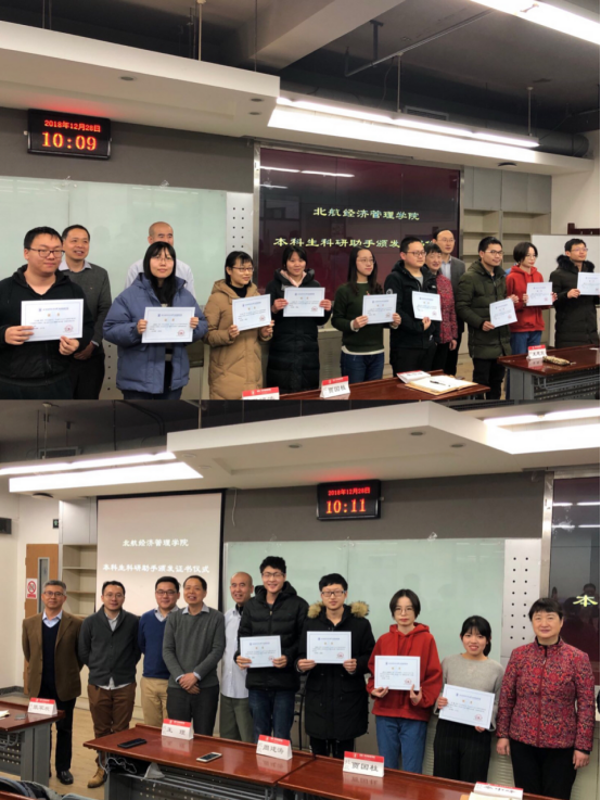2018年12月28日上午10:00,新主楼A618教室洋溢着喜庆的气氛,bat365中文官方网站在本科生科研助手计划实施6周年之际,举行了座谈交流会并颁发证书。
