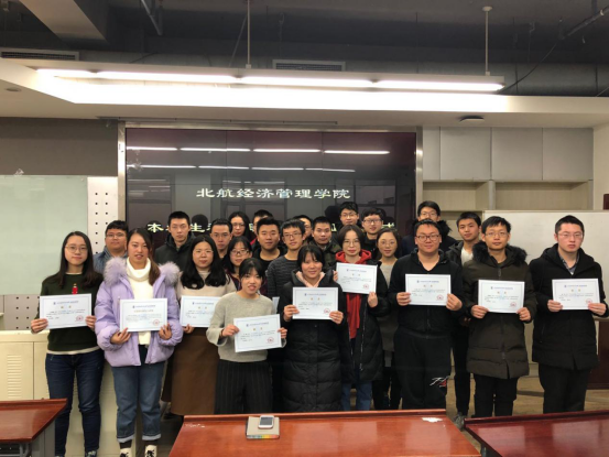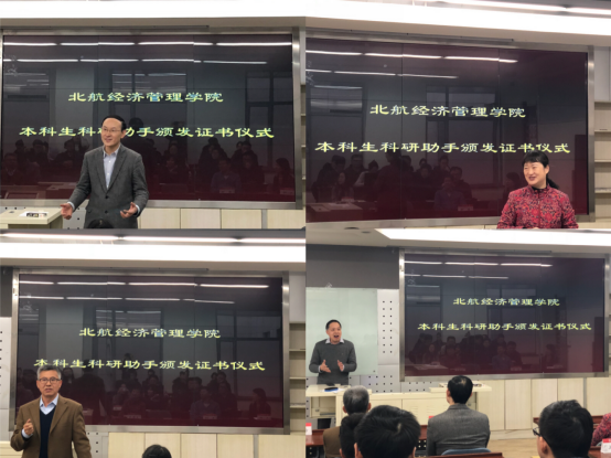 参加此次会议的有推动和支持项目开展的王惠文教授、贾国柱教授和朱伟老师;现任主管领导秦中峰教授和单伟副教授;导师代表王理教授、周建涛副教授、张军欢副教授、刘冠男老师和四十余名获证学生代表。
