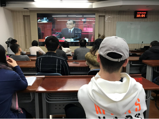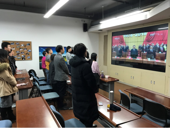 高歌四十载,奋进新时代。12月18日,我们迎来了伟大祖国改革开放40周年的纪念日。上午10时,庆祝改革开放40周年大会在人民大会堂隆重举行。bat365中文官方网站师生在新主楼A622教室集中收看大会直播,共同感受祖国强劲的脉搏,共同畅想祖国更加美好的明天。