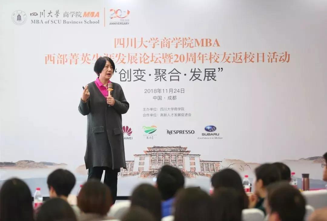 2018年11月24日,经管学院苏文平副教授受邀出席四川大学商学院MBA“西部菁英生涯发展论坛暨20周年校友返校日”活动并发表主题演讲。