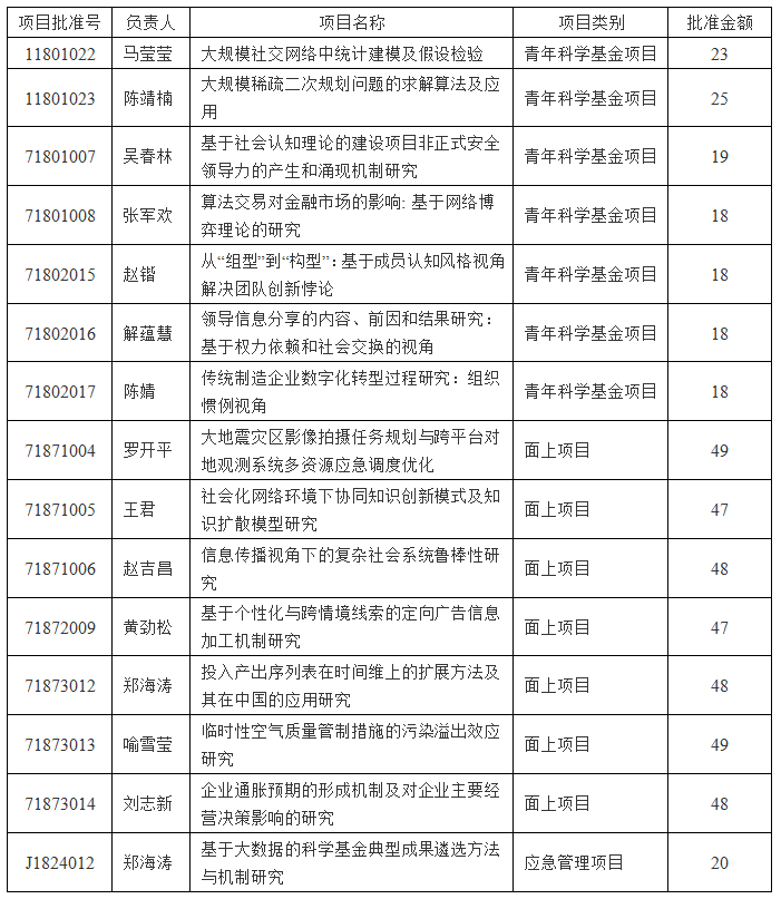 2018年度国家自然科学基金集中申报期间,bat365官网申报工作稳步进行,目前已经圆满完成,全院共申报各类项目34项,获批15项,总体资助率44%。获资助金额495万元。再次向获得资助的教师表示祝贺,现将各类项目公布如下: