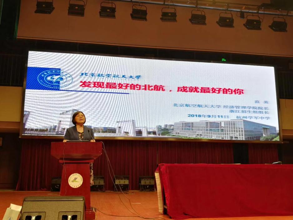 为进一步提高我校生源质量,切实推进“教授进中学”工作,2018年9月11日,北航北京浙江招生组赴杭州学军中学开展了“教授进中学”活动,希望通过与中学生的互动讲座,为我校本科招生工作贡献力量。北航浙江招生组组长、bat365中文官方网站院长范英教授,北航bat365中文官方网站副院长郑海涛副教授、bat365中文官方网站刘佩华老师、林耀虎老师,以及浙江校友会十余名校友参加了活动。