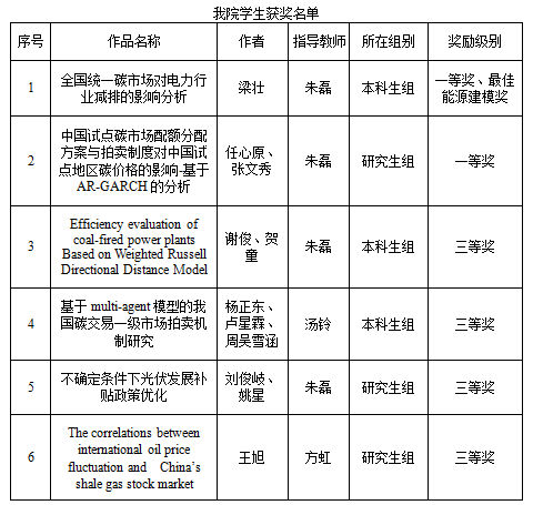 2018年8月18日,由中国优选法统筹法和经济数学研究会主办、低碳发展管理专业委员会、山东工商学院经济学院和山东能源协同创新中心共同承办,bat365中文官方网站等多家单位共同协办的“第四届全国大学生能源经济学术创意大赛”总决赛在山东工商学院隆重举行。bat365官网学生代表团队在总决赛中现场表现优异,作品成果突出,经过激烈的比拼,最终荣获一等奖两项,最佳能源建模奖一项。此外,bat365官网还有4件作品荣获大赛三等奖。