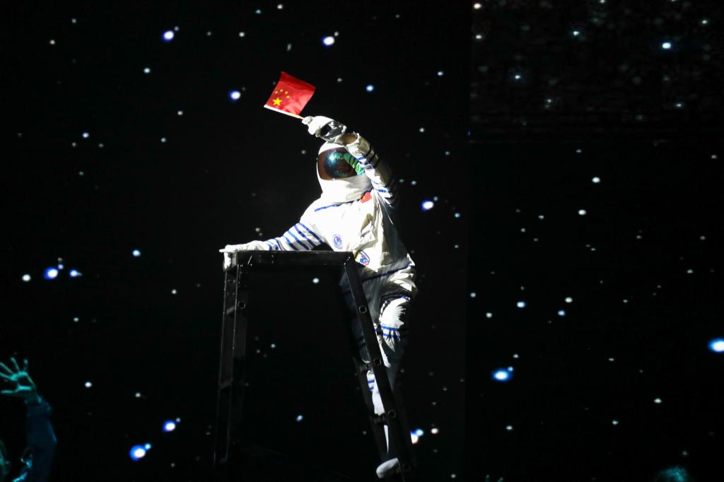 在激动人心的学院大点兵之后,伴随着飞行学院学生扇舞团编排的舞蹈《破风》,晚会正式拉开了帷幕。晚会以BUAA2018逐梦号飞船太空旅行的场景设定,分为“相遇·似水韶华”“相知·臻萃流年”“相守·凌霄寰宇”三个篇章,通过歌曲、相声、朗诵、舞蹈等形式的文艺节目,将各篇章串联起来,为全体师生献上了一份精彩的毕业大礼。
